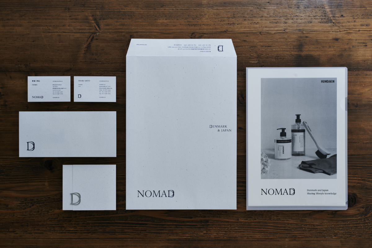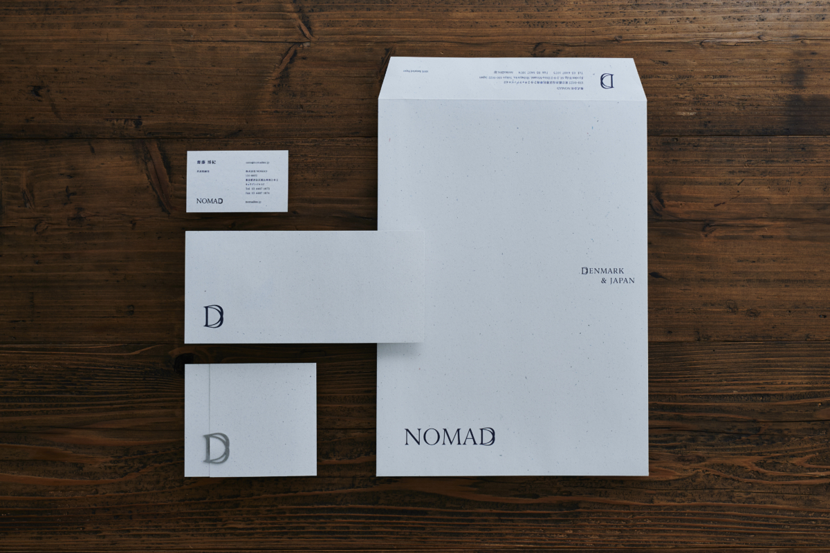 コンセプト「デンマークと日本 共伝するライフスタイル」を表現するロゴデザイン。Denmarkの頭文字でもある“D”を角度をずらして2つ重ね、両国の間でライフスタイルを共伝しながら心地よさを広げていくNOMADの使命を象徴するシンボルを作成し、ロゴタイプの中に組み込みました。“D”の部分のみ単体でシンボルマークとしても使用できるデザインになっています。