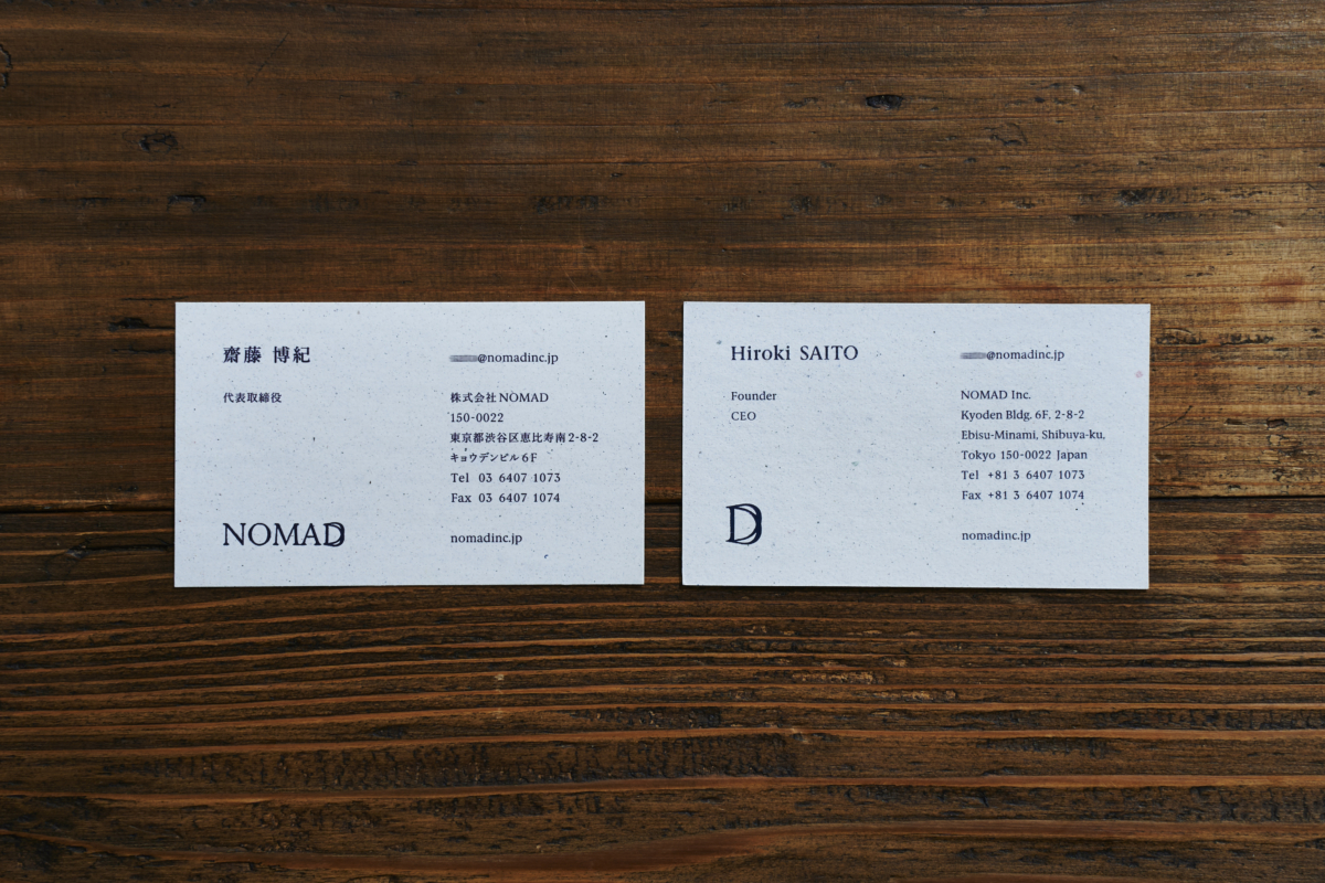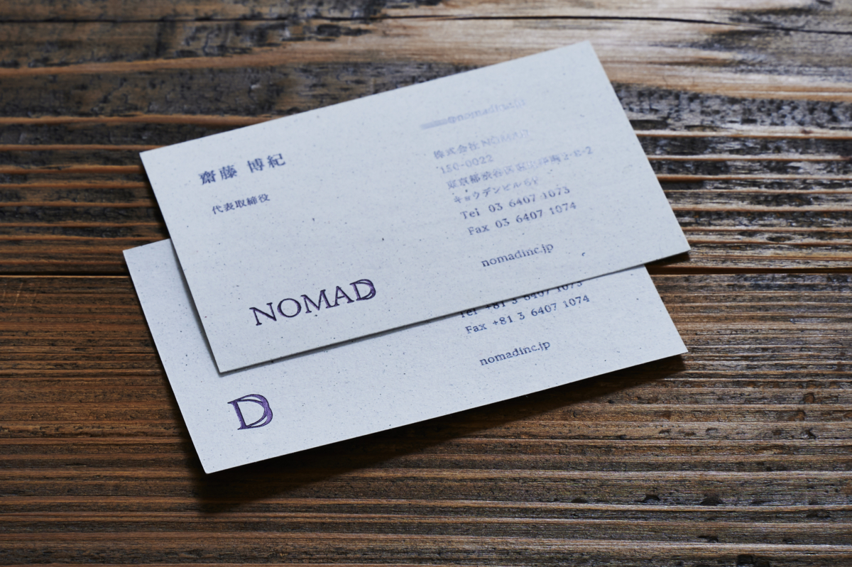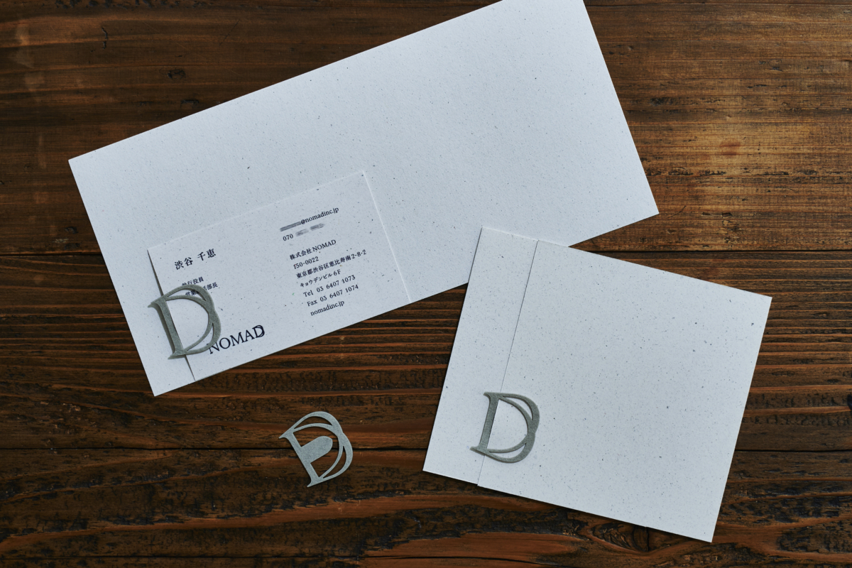 2つのDの重なりは、開く扉や、空を飛ぶ羽のようにも見え、軽やかに世界中を行き来するNOMADの自由なイメージも表しています。